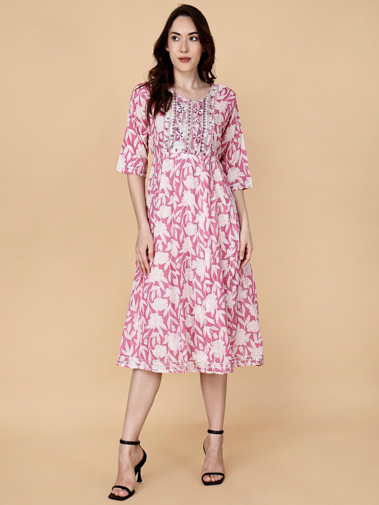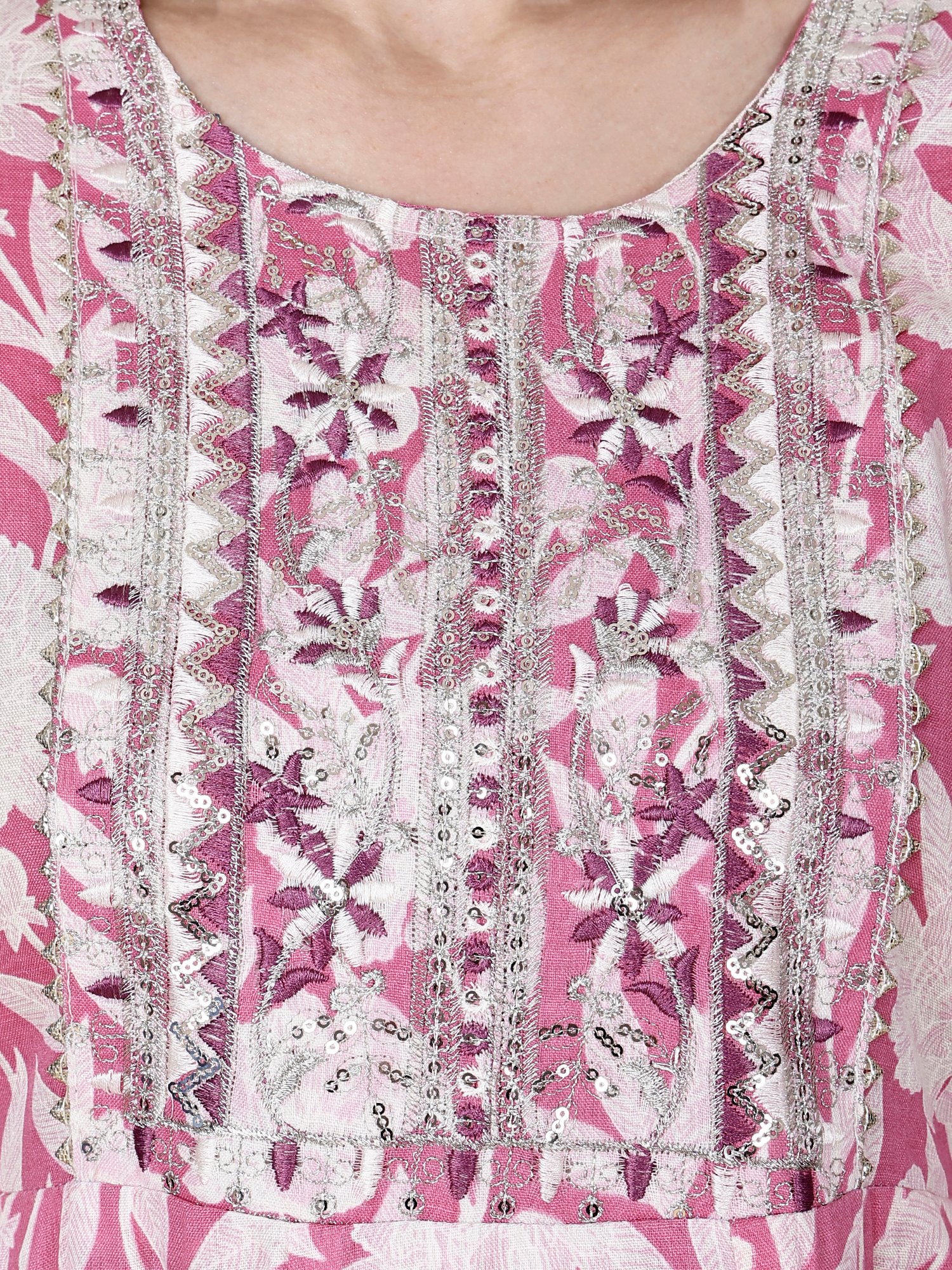 “Beautiful light pink A- line kurta adorned with delicate embroidery, which is a captivating style that women can wear on any occasion and make themselves stand out from the crowd. This kurta offers a beautiful blend of comfort & traditional style. buy online our site pretty lady.”