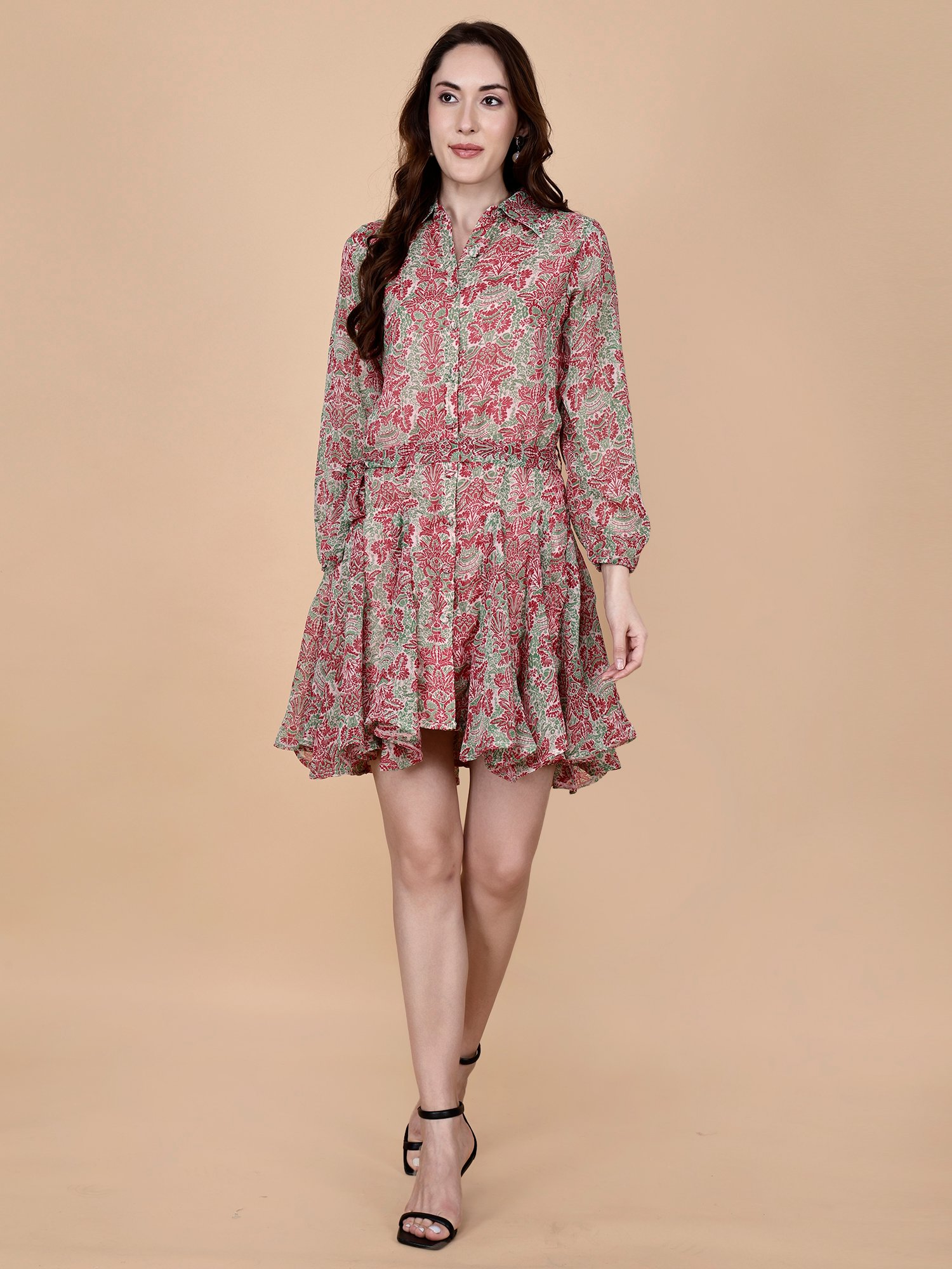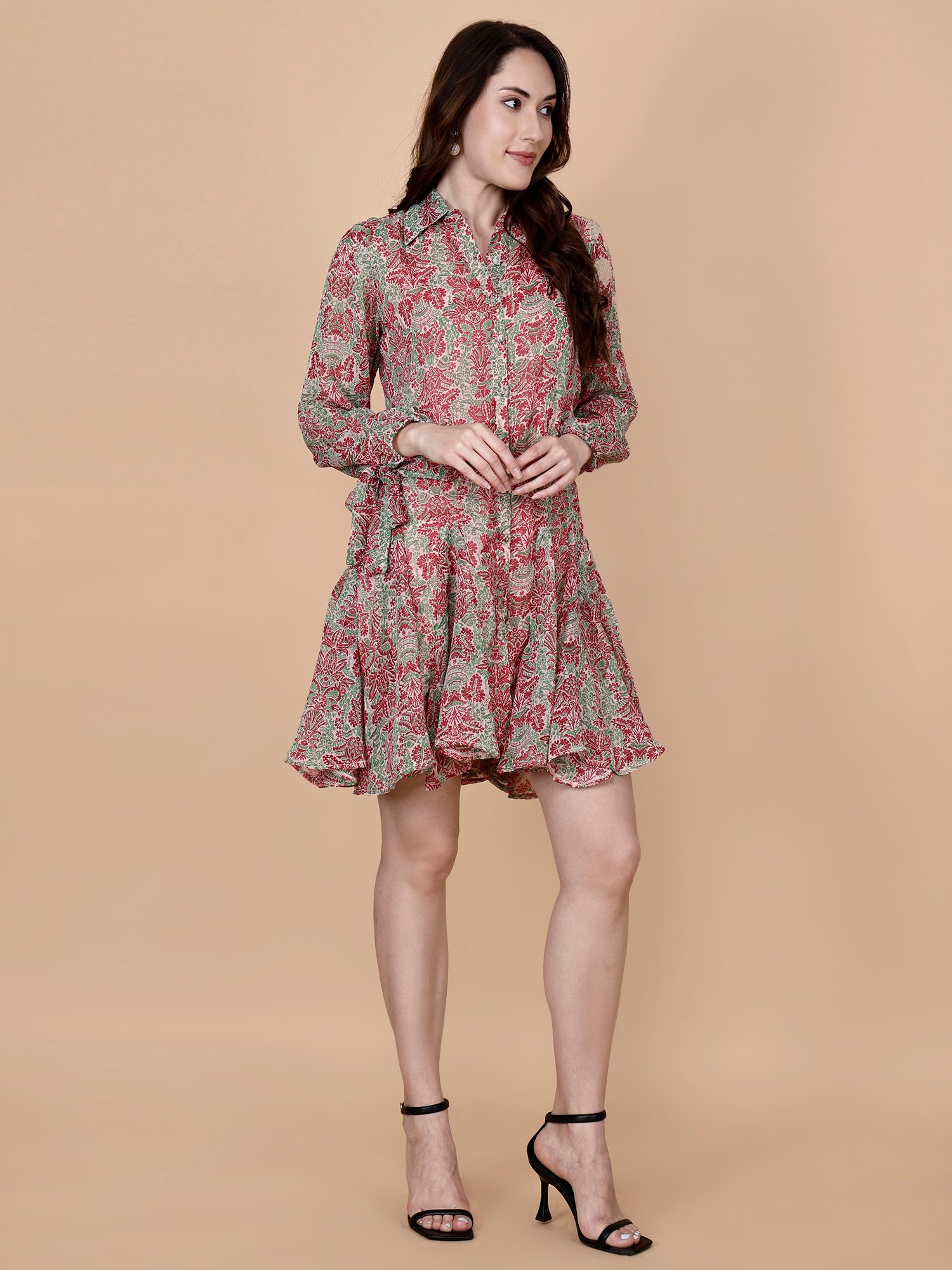 “Beautiful crepe cotton fit & flare mini dress crafted with adorable print stretchable fitting with full sleeves which gives comfortable feel for every women. buy online our site pretty lady.”